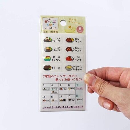 ご家庭のカレンダーや手帳に貼って、毎日の献立を楽しみながら考えることのできる付箋です。