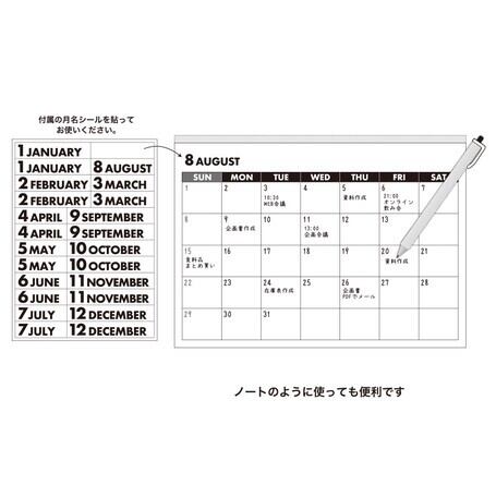 月名シールを貼って、日付を書き込むと、カレンダーが完成します。