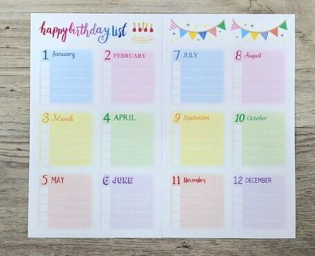 家族や友人などの誕生日を月毎にまとめるシールです。
