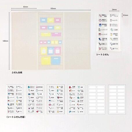 日用品棚(洗面周り)にある日用品を管理できるふせんのセットです。